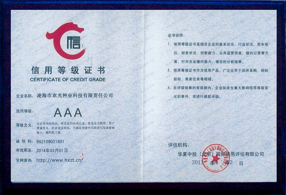 | 凌海市農(nóng)光種業(yè)科技有限責(zé)任公司是由遼寧省種子管理局和凌海市人民政府批準(zhǔn),集科研、生產(chǎn)、試驗(yàn)示范、經(jīng)營(yíng)為一體的種子企業(yè)。 公司擁有種子繁育基地3萬(wàn)畝,年產(chǎn)種子1200萬(wàn)公斤左右。自成立以來(lái)在農(nóng)業(yè)部及遼寧省歷次花期檢驗(yàn)中,所生產(chǎn)的種子質(zhì)量合格,擁有良好的儲(chǔ)備、晾曬和機(jī)械加工設(shè)備,為了提高種子質(zhì)量,2015年新購(gòu)置種子脫粒機(jī)、清選機(jī)、烘干機(jī)以及電腦包裝機(jī)等整套加工設(shè)備,擁有經(jīng)省技術(shù)監(jiān)督局認(rèn)證的“標(biāo)準(zhǔn)化檢驗(yàn)室”,投資20萬(wàn)元購(gòu)買(mǎi)人工氣候室、土壤測(cè)試儀、低溫低濕冷藏箱等各種檢驗(yàn)設(shè)備。公司重視種子科研工作,現(xiàn)有科研育種實(shí)驗(yàn)基地100畝,科研上以自主研發(fā)為主,同時(shí)與多家科研單位合作育種,每年繁、育、測(cè)交材料2000多份,現(xiàn)以推出五個(gè)組合參加錦州區(qū)域試種,其中“農(nóng)光3號(hào)、農(nóng)光4號(hào)”在錦州地區(qū)試驗(yàn)中產(chǎn)量居首位。2006年公司買(mǎi)斷的連玉16玉米品種已通過(guò)5個(gè)省市的審認(rèn)定,具有適應(yīng)性廣、抗逆性強(qiáng)、產(chǎn)量高的特點(diǎn),曾榮獲大連科技進(jìn)步一等獎(jiǎng),深受廣大農(nóng)戶的歡迎。2008年公司新選育的農(nóng)光4000玉米品種在市種子管理站新品種大區(qū)試驗(yàn)項(xiàng)目中。2012年公司買(mǎi)斷錦玉118品種權(quán),新品種的推廣與應(yīng)用為公司的發(fā)展提供了充足的動(dòng)力...... |